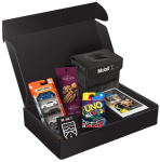 Postcard, Mobil 1 Sticker, 1.5 oz Sahale Trail Mix (flavor varies), Uno All Wild