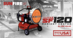 SF120 is a 120,000 BTU dual fuel (diesel/kerosene) portable radiant heater.