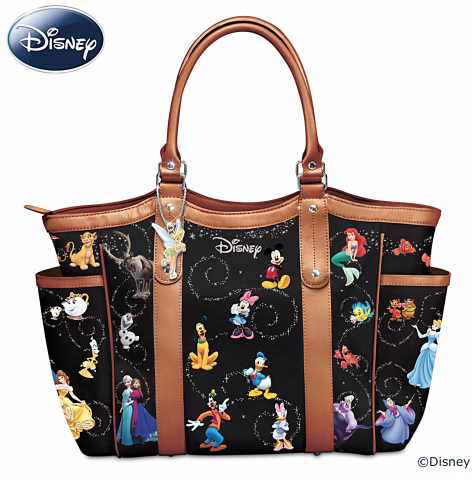 of Disney characters and a Tinker Bell charm. Multiple pockets and zip